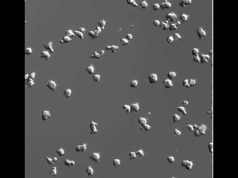 Cells that are unable to move properly due to failure of the integrin link. Filmed using light microscopy. Credit: Lund University